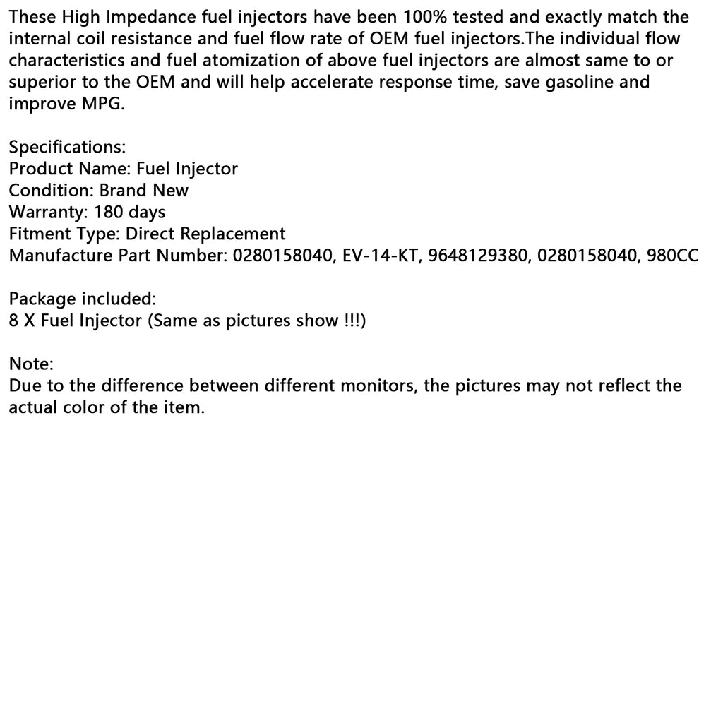 Tieto vysokoimpedančné vstrekovače paliva boli 100% testované a presne zodpovedajú vnútornému odporu cievky a prietoku paliva od výrobcu (OEM). injectors.The Individuálne prietokové charakteristiky a atomizácia paliva vyššie uvedených vstrekovačov paliva sú takmer rovnaké alebo lepšie ako u originálnych dielov (OEM) a pomáhajú zrýchliť čas odozvy, ušetriť benzín a zlepšiť spotrebu paliva.