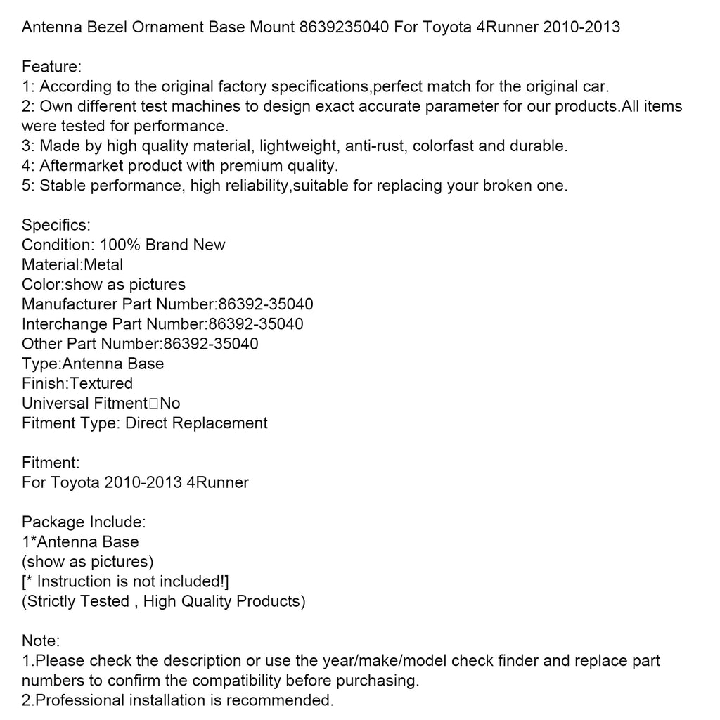 Antenna Bezel Ornament Base Mount 8639235040 For Toyota 4Runner 2010-2013