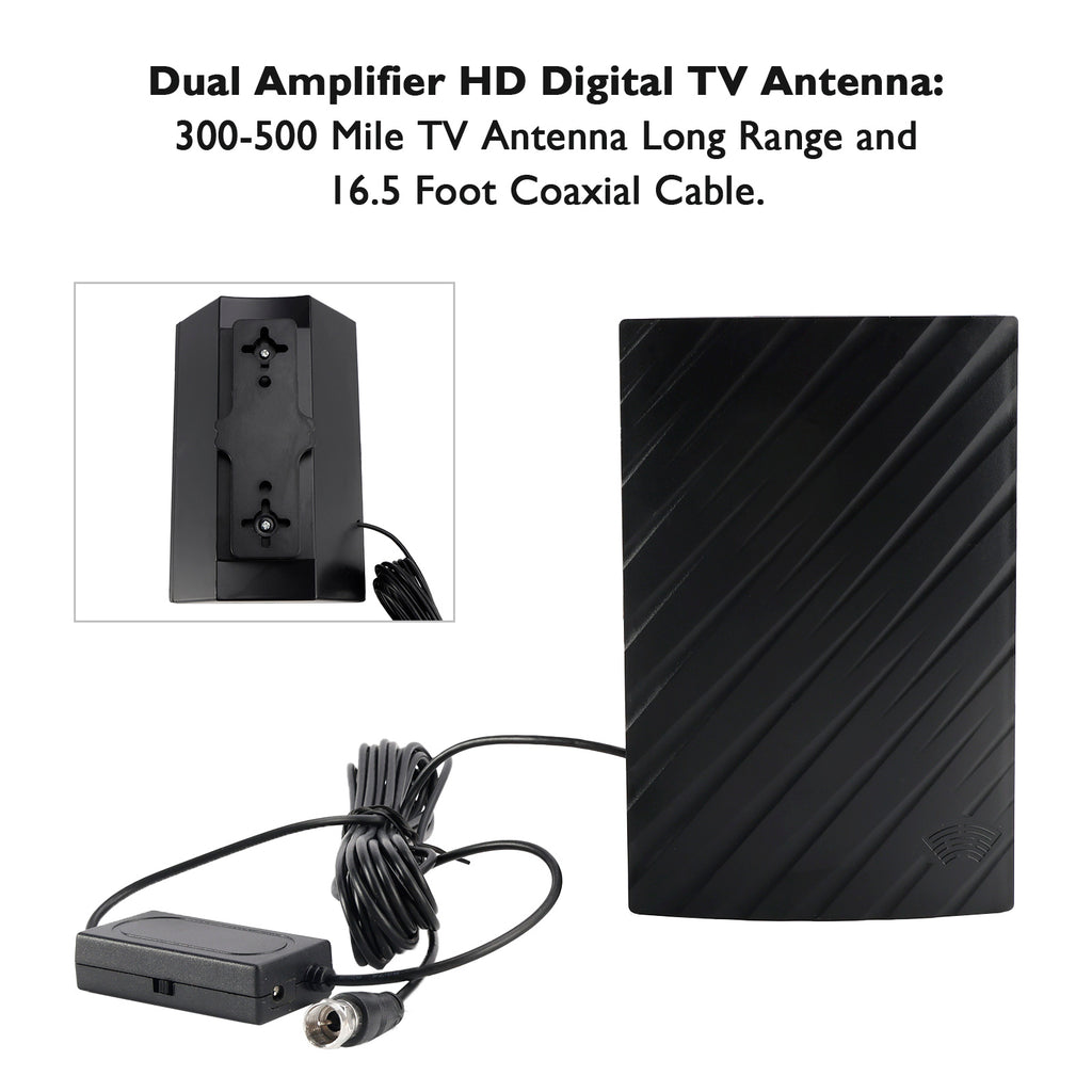 Digitálna TV anténa s dvojitým zosilňovačom HD: TV anténa s dlhým dosahom 480 – 800 km a koaxiálnym káblom s dĺžkou 5 metrov.