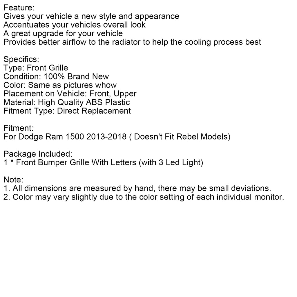 Big Horn Style Front Bumper Grill Grille Fit for Dodge Ram 1500 2013-2018 Black