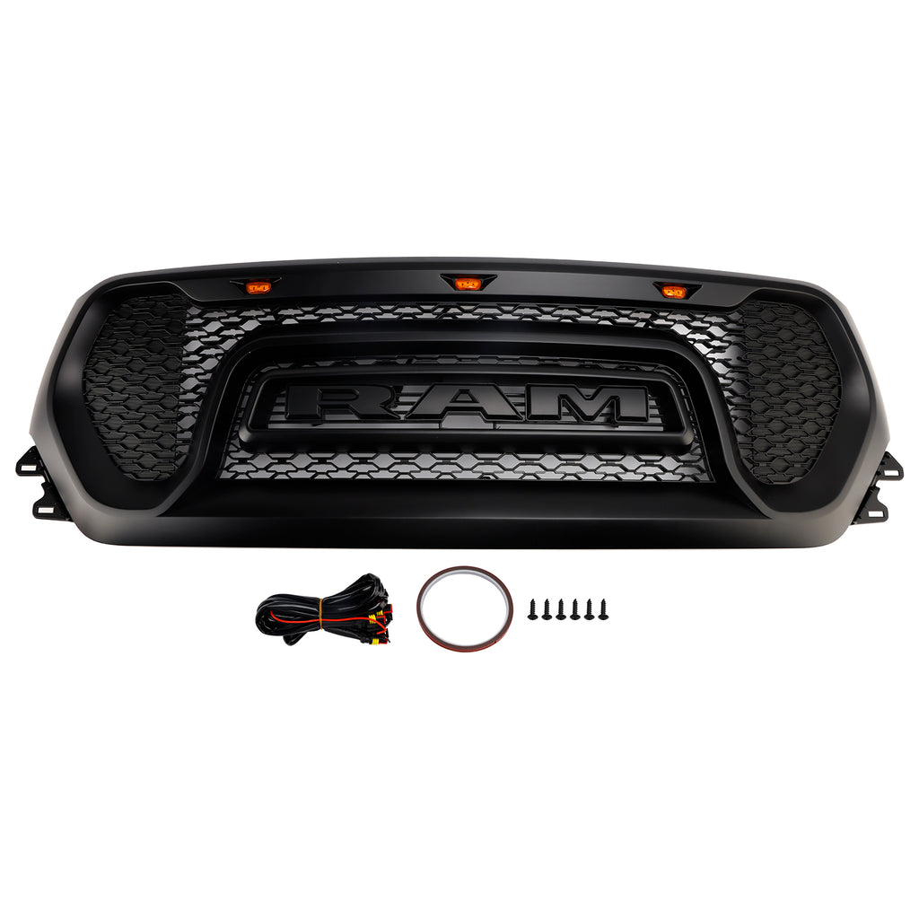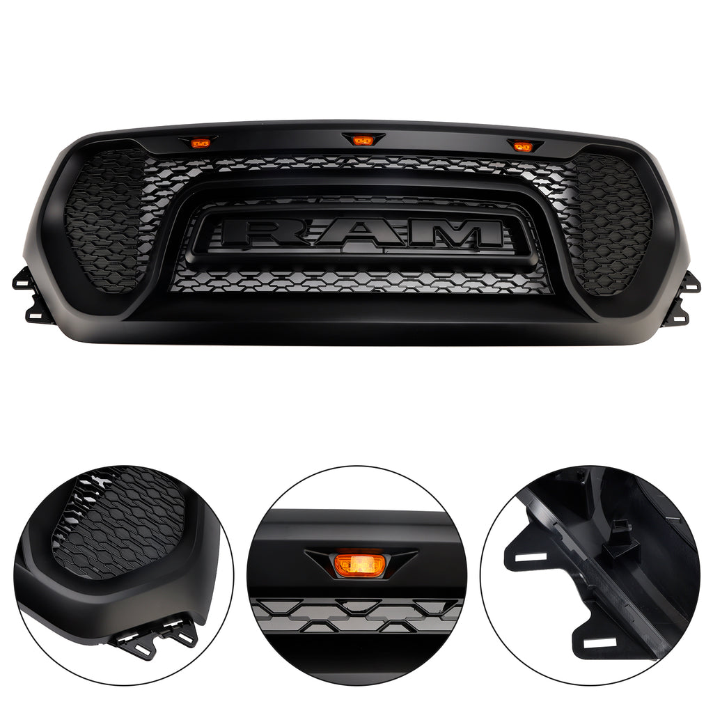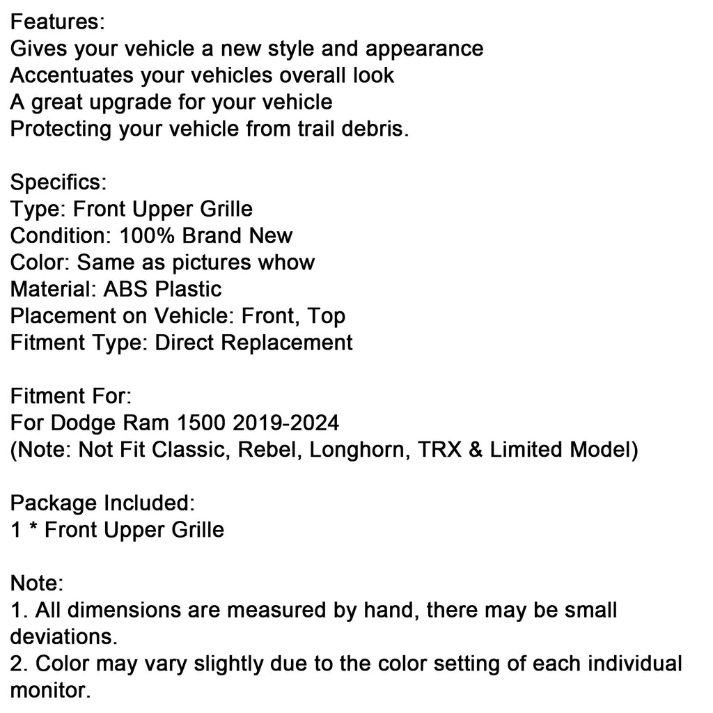 Black Front Honeycomb Upper Hood Grille Grill Fit Dodge Ram 1500 2019-2024