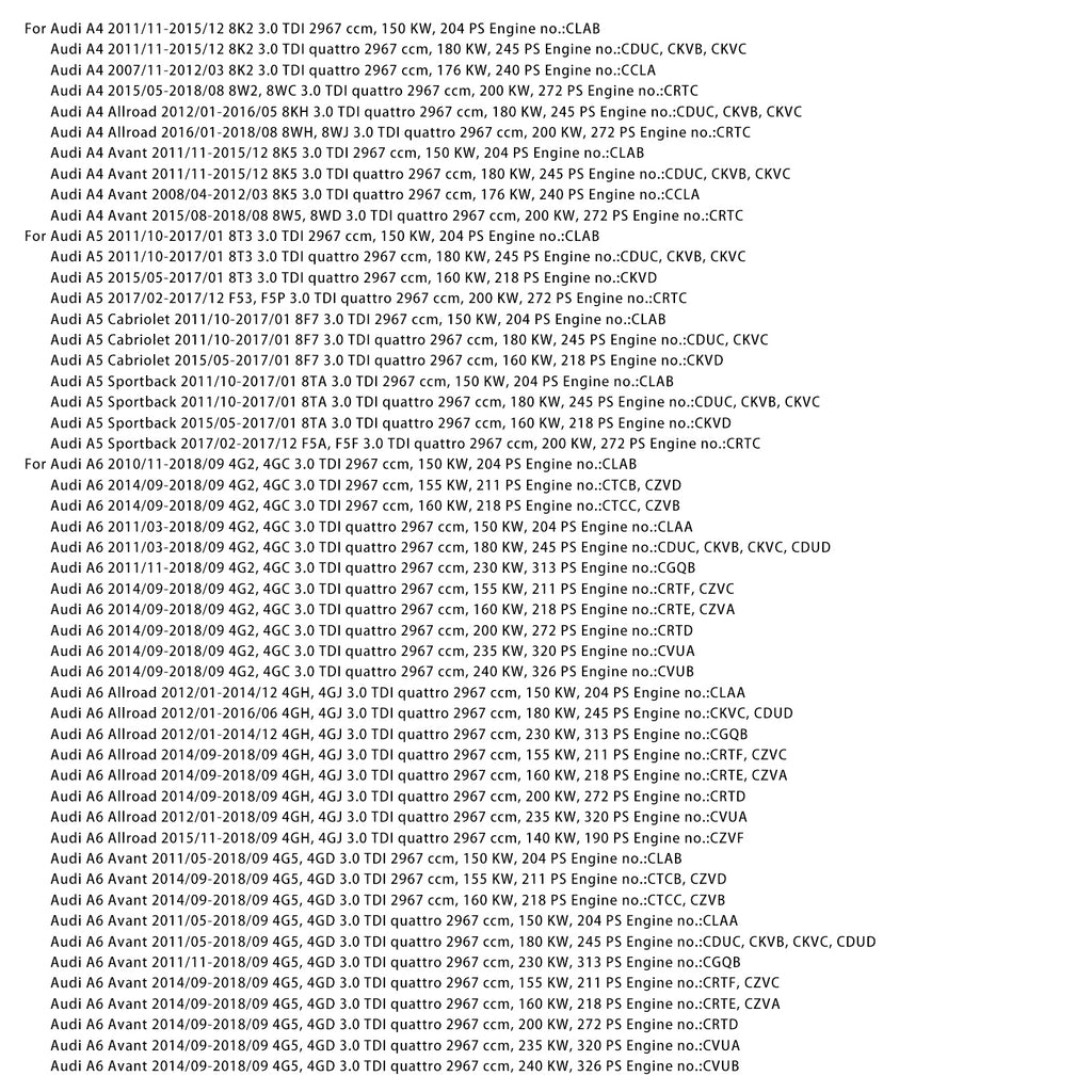 For Audi A6 Avant 2014/09-2018/09 4G5, 4GD 3.0 TDI 2967 ccm, 155 KW, 211 PS Engine no.:CTCB, CZVD