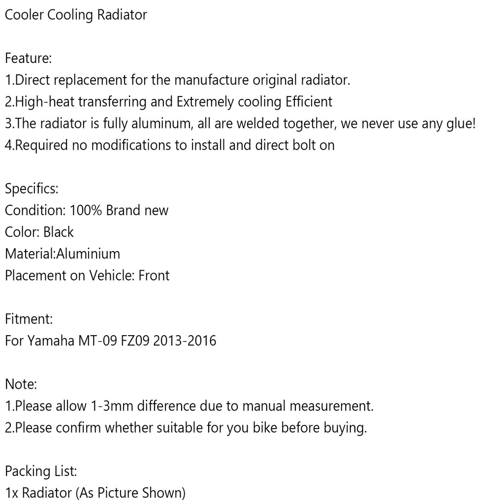 Chladič vodného chladenia motora, vhodný pre Yamaha MT-09 FZ09 2013-2016