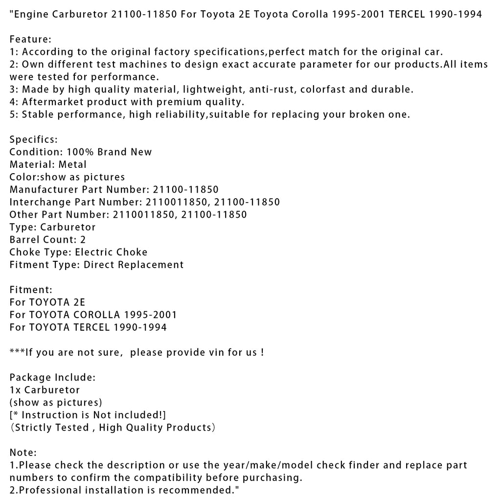 Engine Carburetor 21100-11850 Fit For Toyota 2E Toyota Corolla 1995-2001 TERCEL 1990-1994