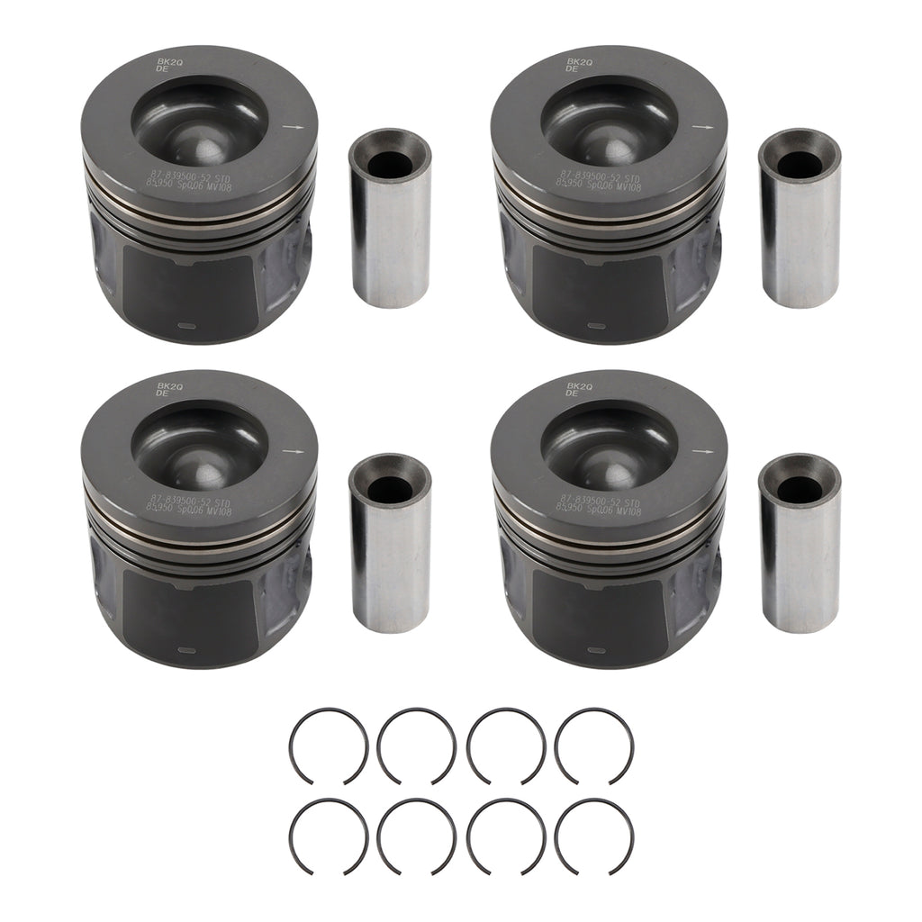 Štyri piesty vrátane piestnych krúžkov, poistných krúžkov a piestneho čapu