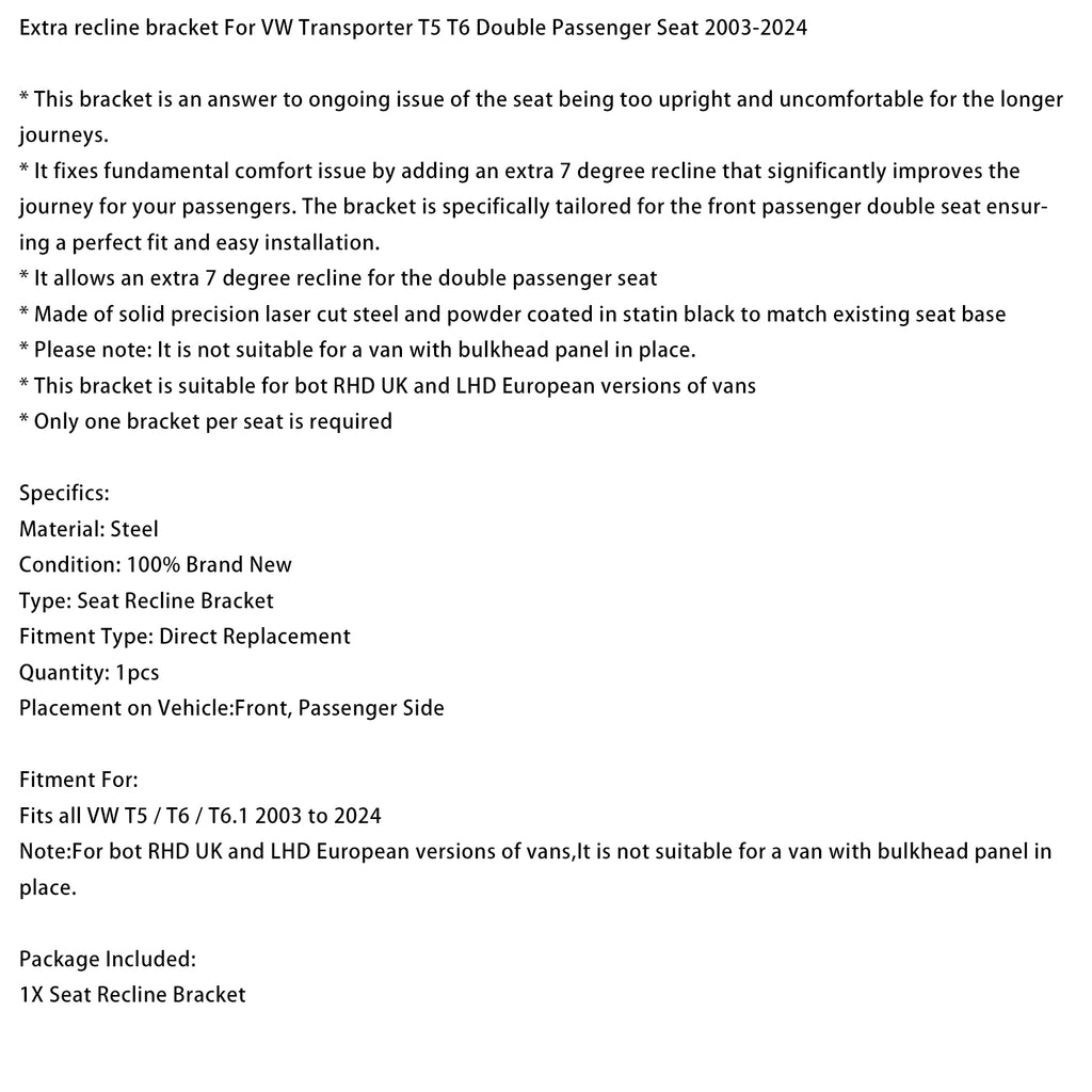 Extra recline bracket Fit For VW Transporter T5 T6 Double Passenger Seat 2003-2024