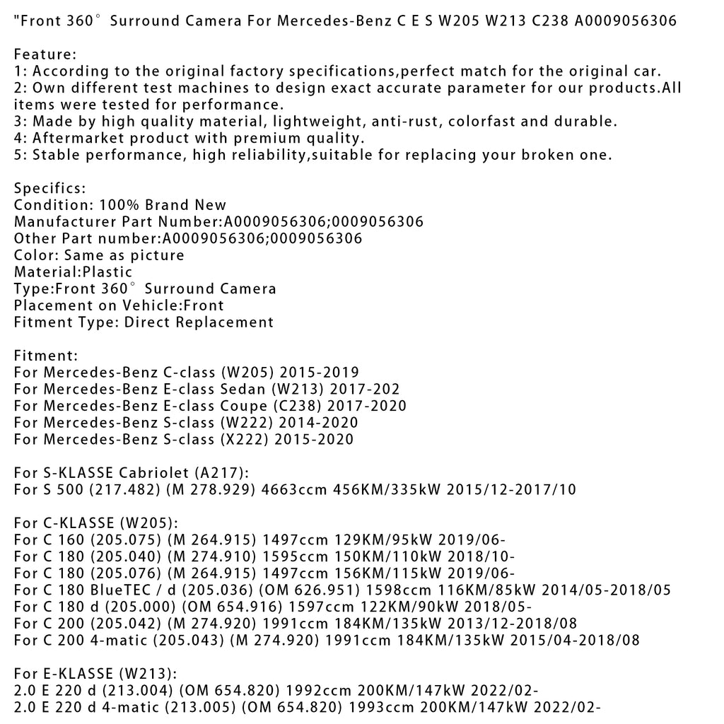 Front 360°Surround Camera Fit For Mercedes-Benz C E S W205 W213 C238 A0009056306