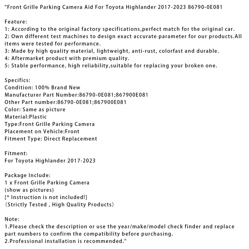 Front Grille Parking Camera Aid Fit For Toyota Highlander 2017-2023 86790-0E081
