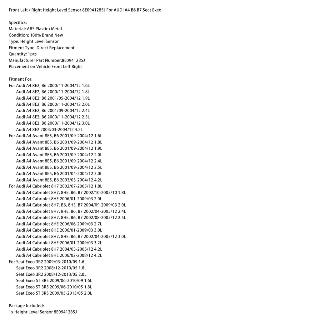 Front Left / Right Height Level Sensor 8E0941285J For AUDI A4 B6 B7 Seat Exeo