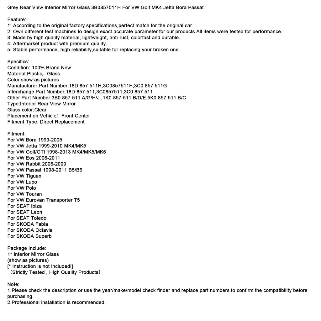 Grey Rear View Interior Mirror Glass 3B0857511H For VW Golf MK4 Jetta Bora Passat