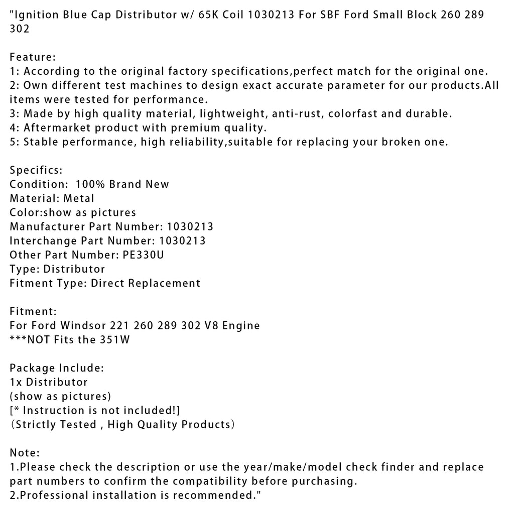 Rozdeľovač zapaľovania s modrým uzáverom a cievkou 65K 1030213 vhodný pre SBF Ford Small Block 260 289 302