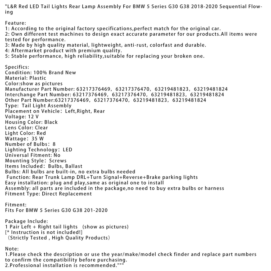 L&Zostava zadných červených LED svetiel pre BMW radu 5 G30 G38 2018-2020, sekvenčné plynulé ovládanie