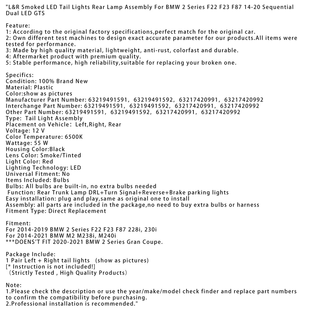 L&Zadné svetlá amp;R s dymovými LED diódami pre BMW radu 2 F22 F23 F87 14-20 sekvenčné duálne LED GTS