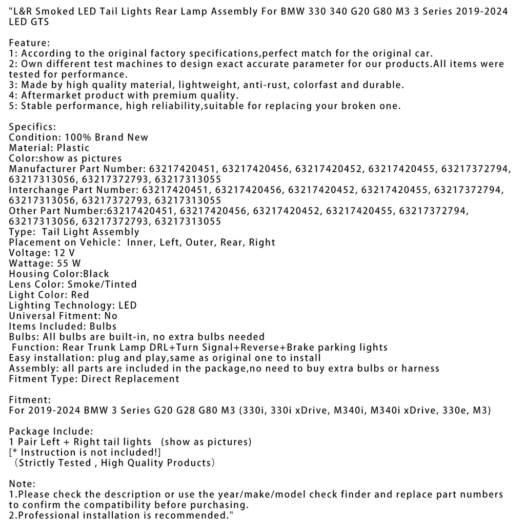 L&Zadné svetlá amp;R s dymovými LED diódami pre BMW 330 340 G20 G80 M3 rad 3 2019-2024 LED GTS
