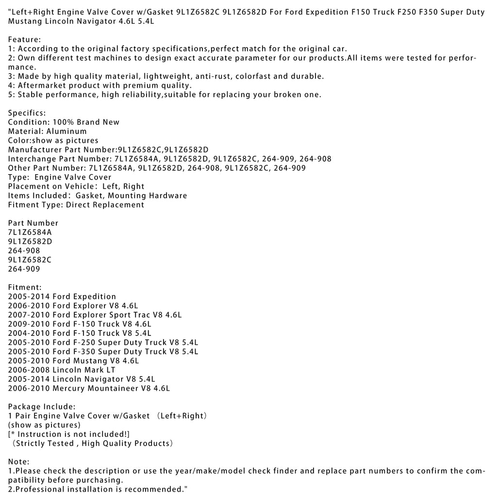 Ľavý + pravý kryt ventilov motora s tesnením 9L1Z6582C 9L1Z6582D pre Ford Expedition F150 Truck F250 F350 Super Duty Mustang Lincoln Navigator 4.6L 5.4L