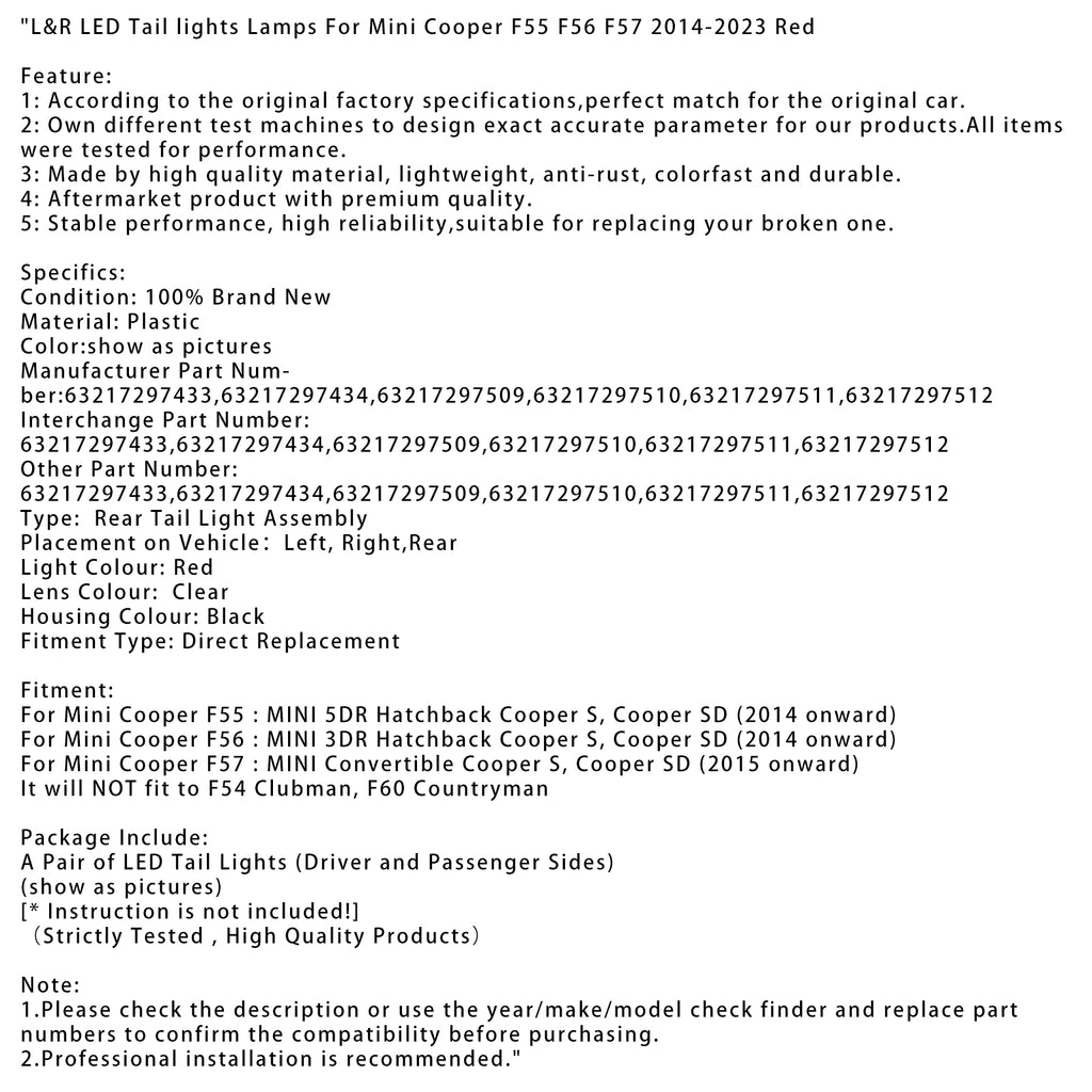 L&Zadné svetlá LED pre Mini Cooper F55 F56 F57 2014-2023 červené