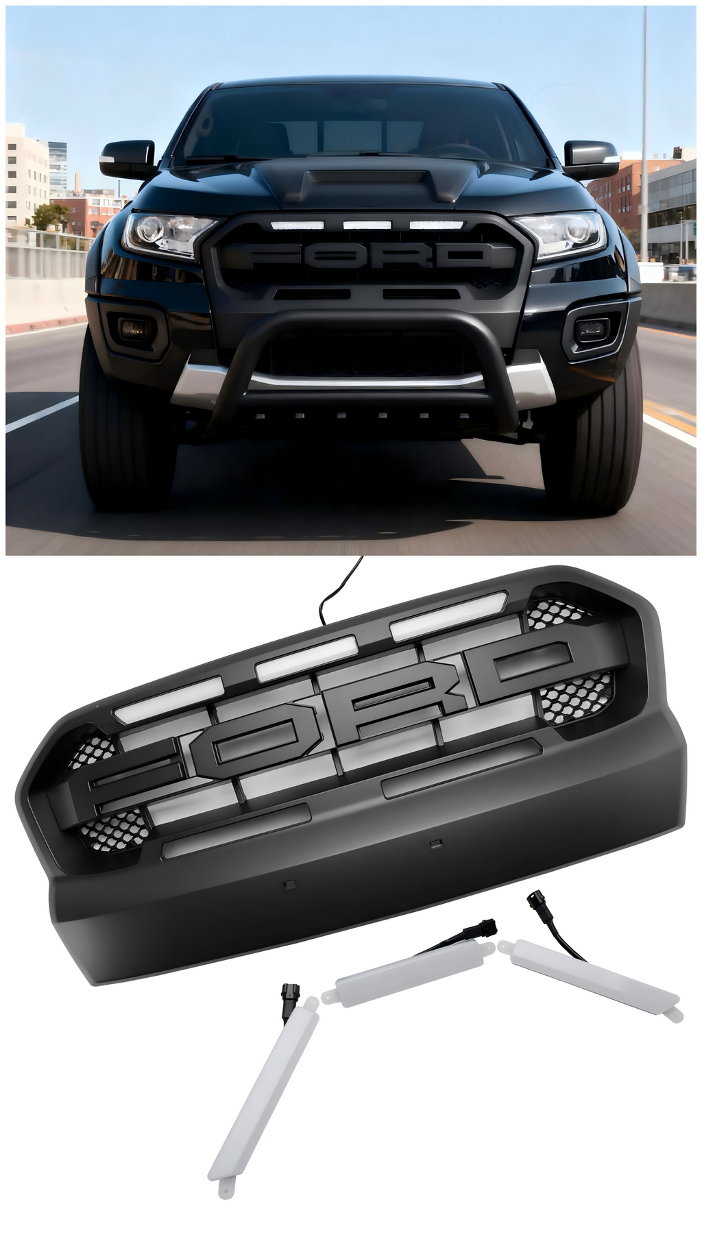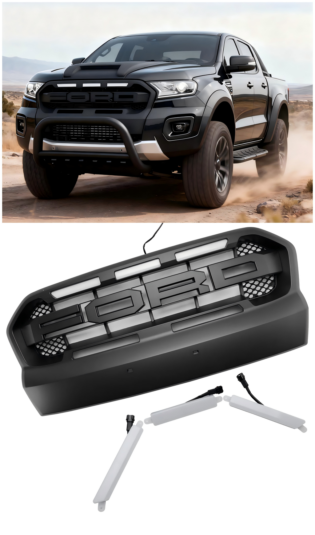 Mriežka predného nárazníka v štýle Raptor vhodná pre Ford Ranger T7 2015-2019 s LED diódami