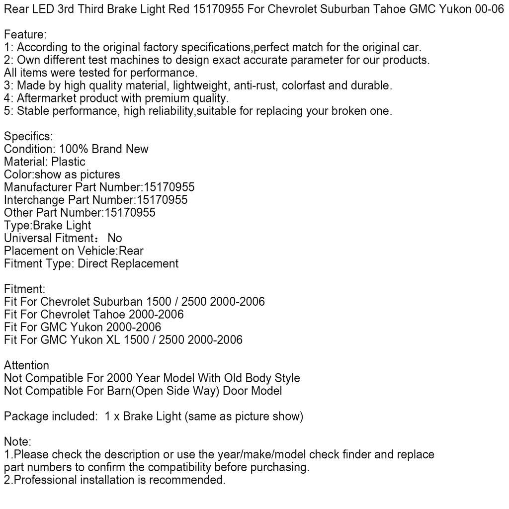 Rear LED 3rd Third Brake Light Red 15170955 For Chevrolet Suburban Tahoe GMC Yukon 00-06