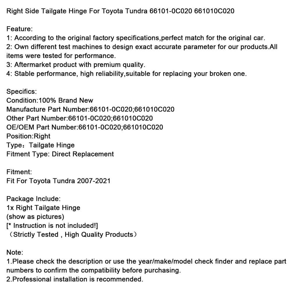 Right Side Tailgate Hinge For Toyota Tundra 66101-0C020 661010C020