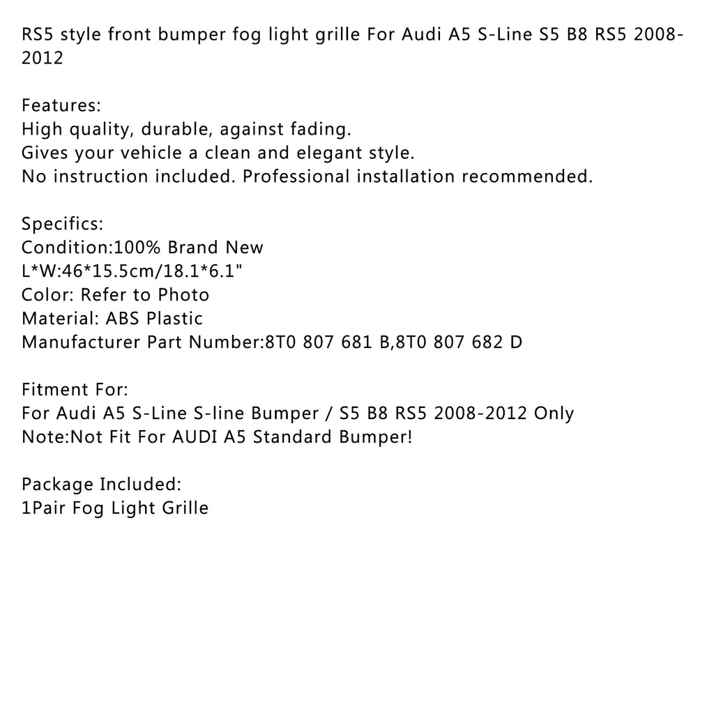 Note: Doesn't Fit AUDI A5 Standard Bumper !