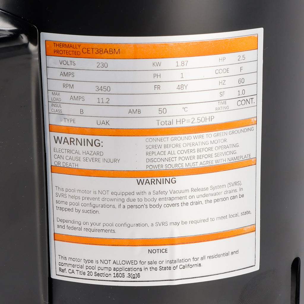 USQ1252 Bazénový motor 2,5 HP 230 V 48Y Štvorcová príruba