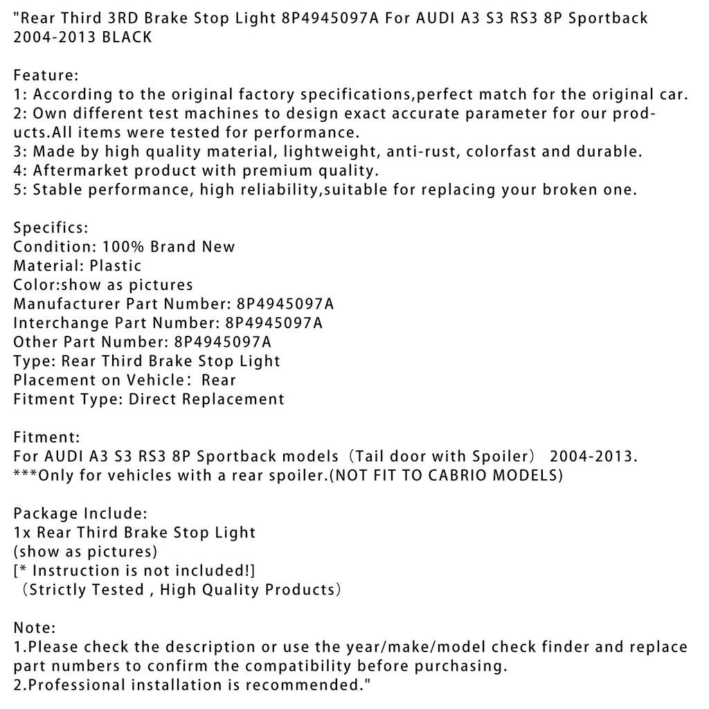 Zadné tretie brzdové svetlo 8P4945097A pre AUDI A3 S3 RS3 8P Sportback 2004-2013 ČIERNA