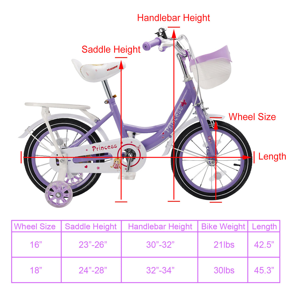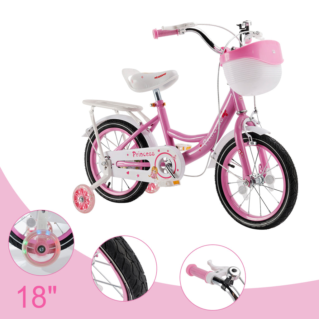 16"/18" Children Princess Bicycle Girls Bike with Removable Training Wheels Pink