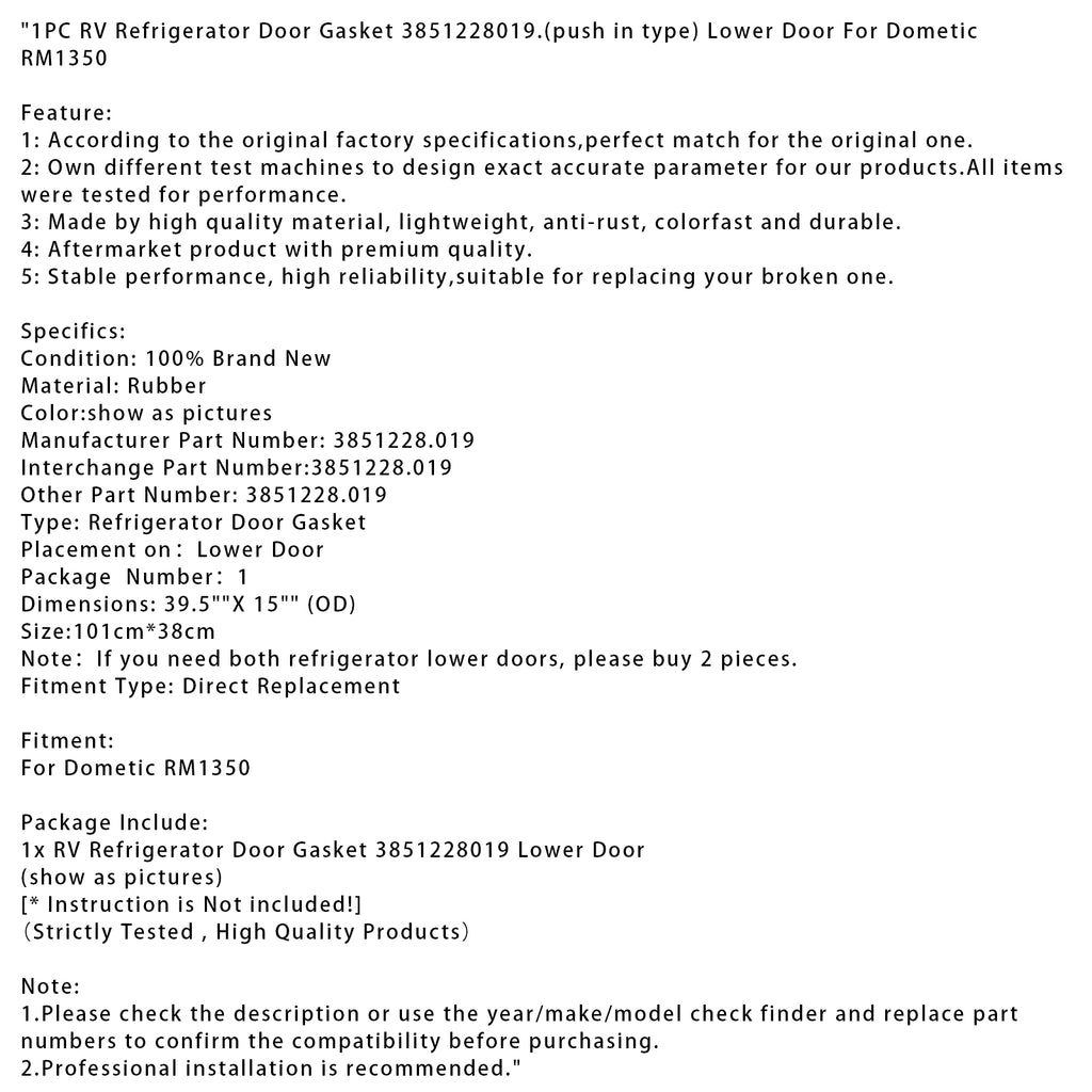 1PC RV Refrigerator Door Gasket 3851228019.(push in type) Lower Door For Dometic RM1350