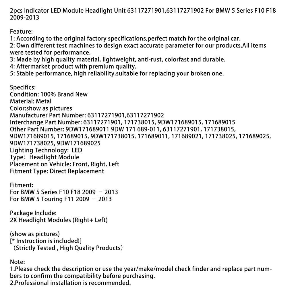 2 st blinkers-LED-modul strålkastarenhet passar för BMW 5-serie F10 F18 2009-2013 63117271901,63117271902