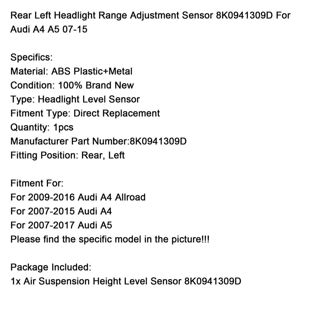 Bakre vänster strålkastarsensor 8K0941309D För Audi A4 A5 2007-2015