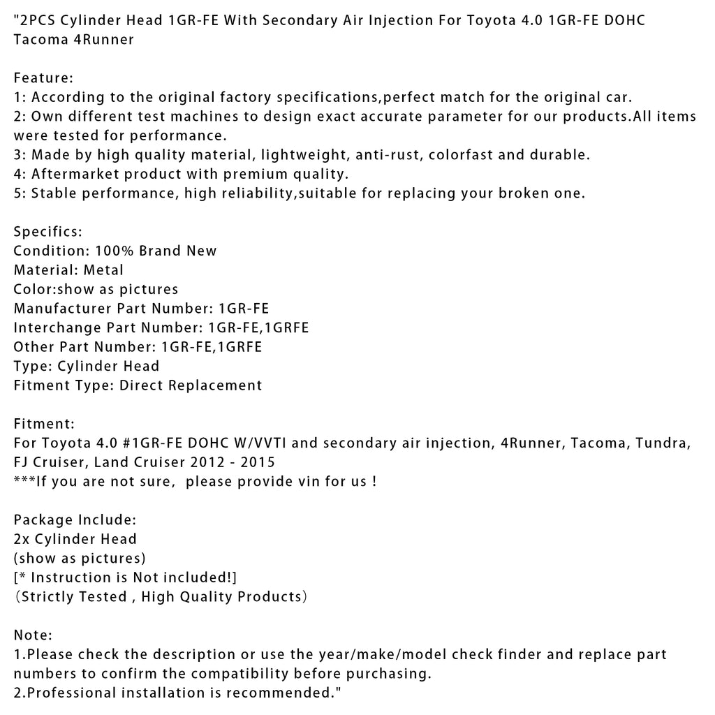 2PCS Cylinder Head 1GR-FE With Secondary Air Injection For Toyota 4.0 1GR-FE DOHC Tacoma 4Runner