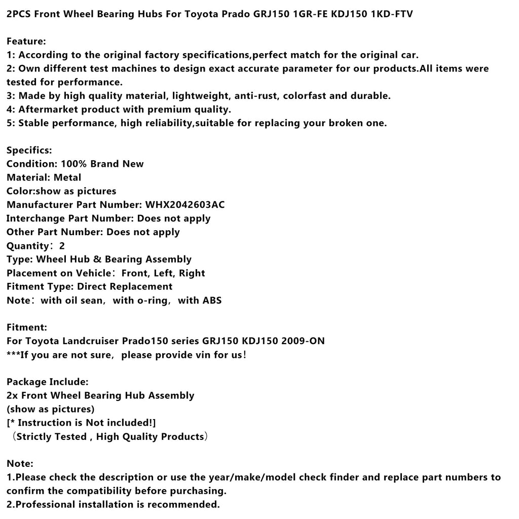 2PCS Front Wheel Bearing Hubs For Toyota Prado GRJ150 1GR-FE KDJ150 1KD-FTV