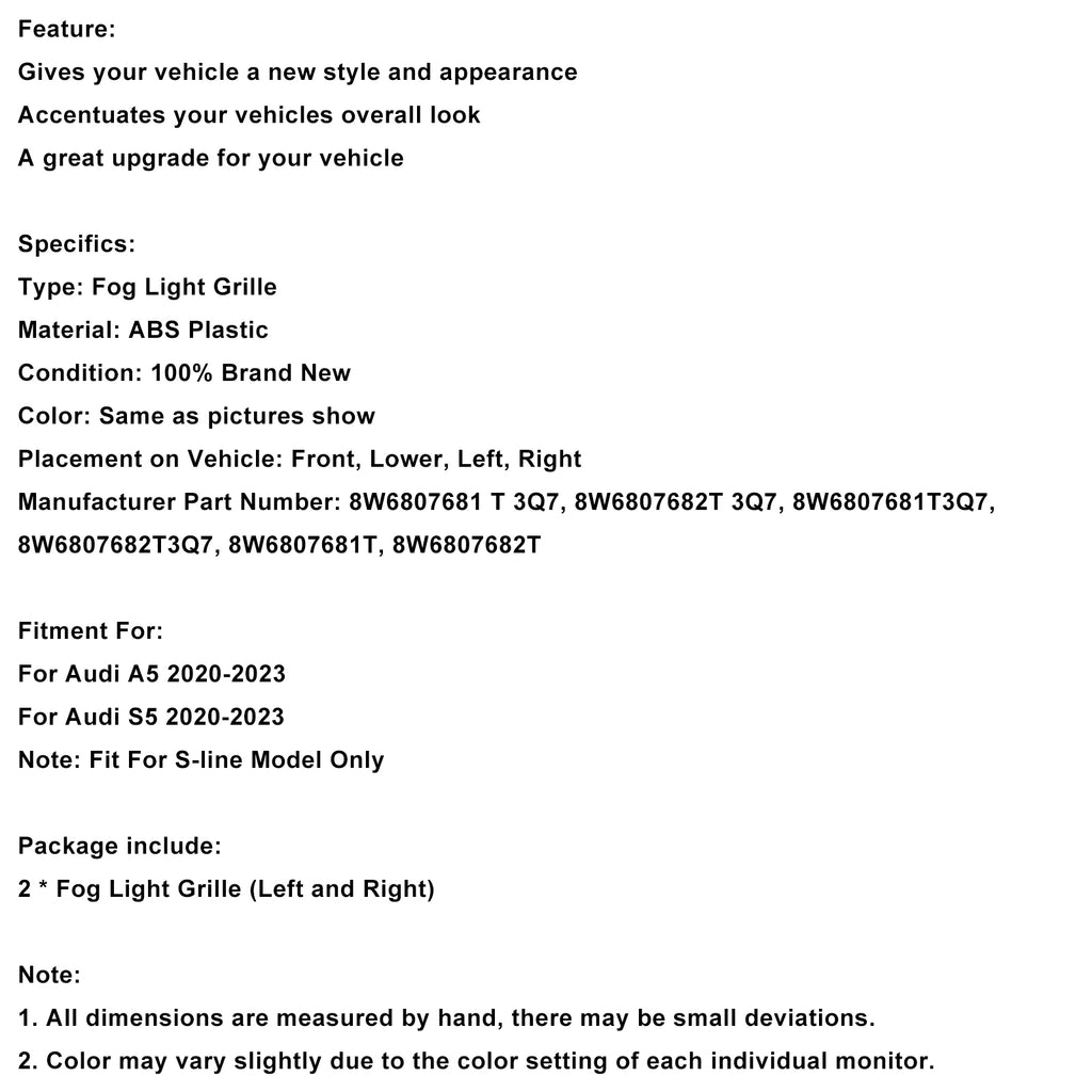 2 st främre stötfångar-dimljusskyddsgaller passar för 2020-2023 Audi A5 S-line S5 8W6807682T3Q7