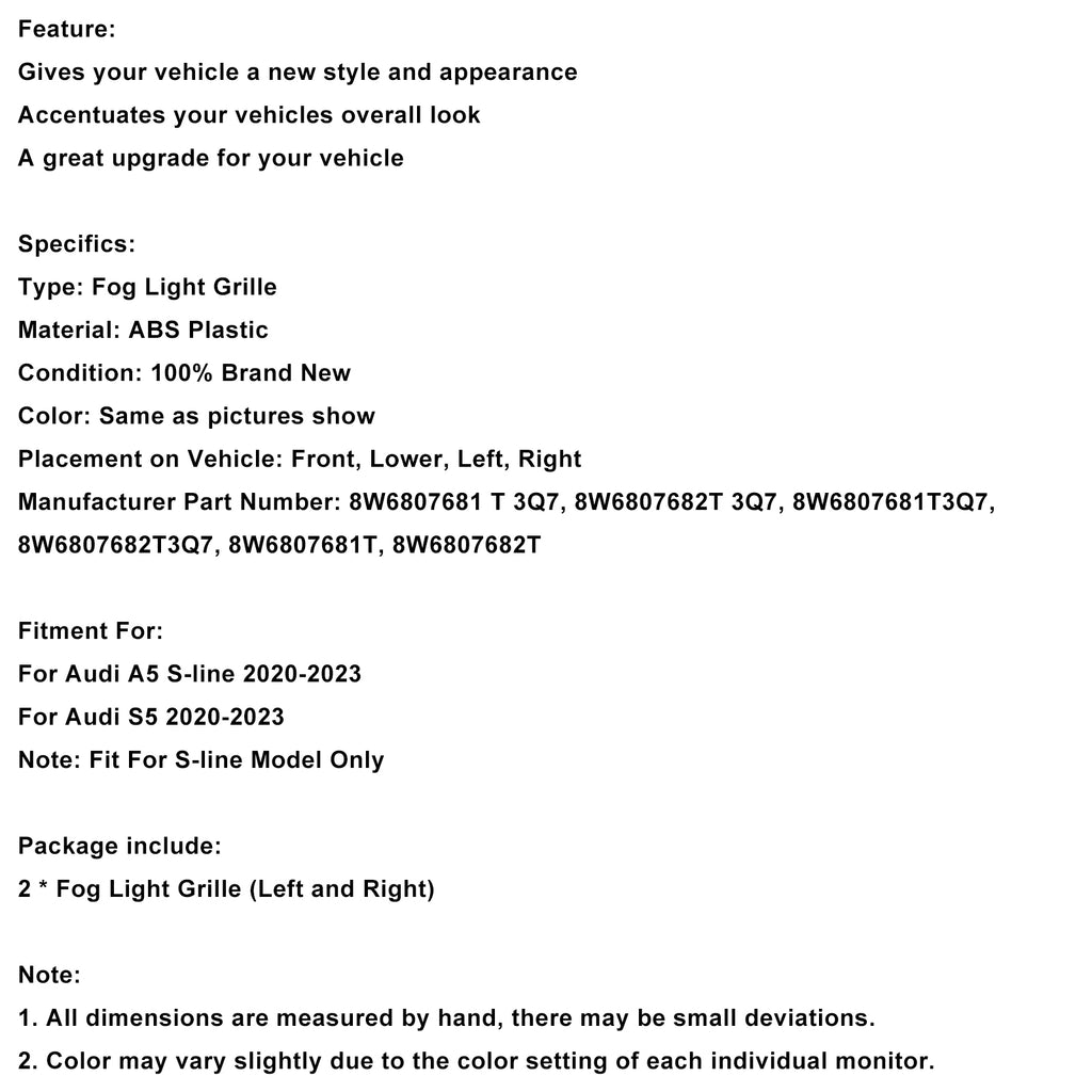 2 st främre stötfångarens dimljusskydd 8W6807682T3Q7 Passar till Audi S5 2020-2023