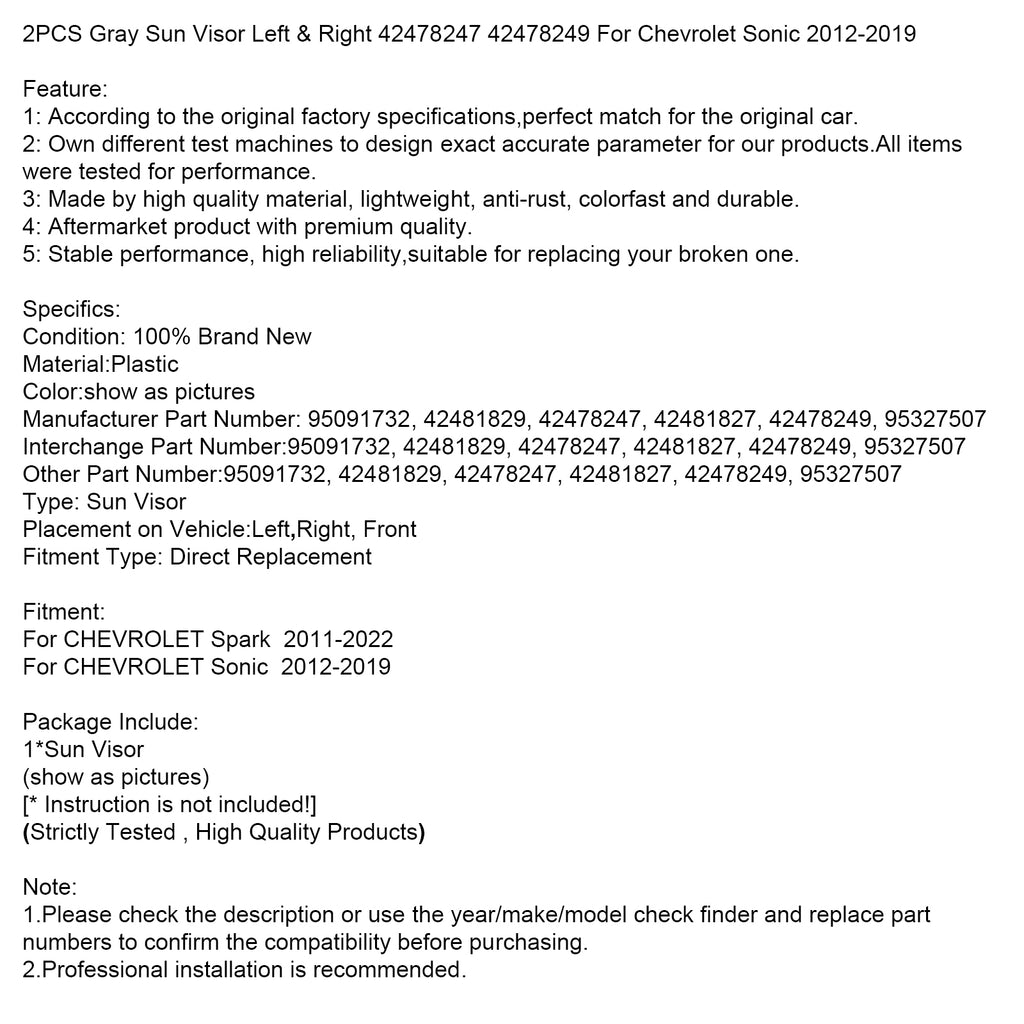 2 st grå solskydd vänster &Höger 42478247 42478249 För Chevrolet Sonic 2012-2019