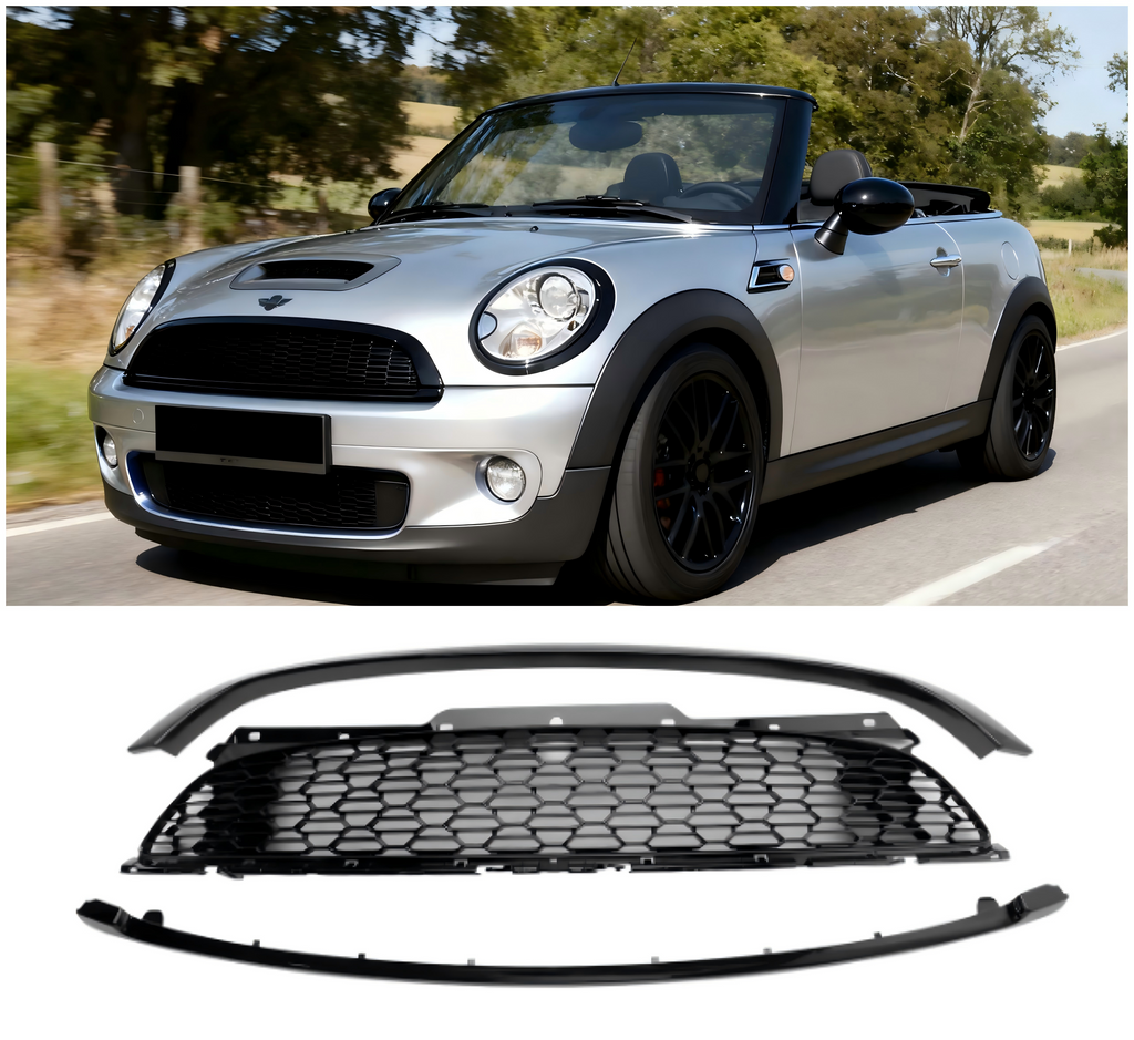 3 st blank svart frontgrill passar till Mini R55 R56 R57 R58 R59 Cooper S &försterkare; JCW