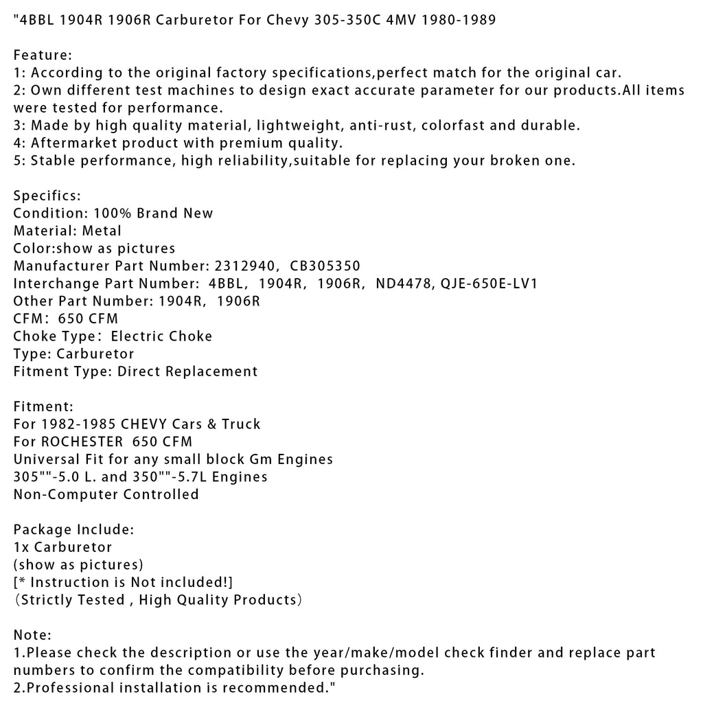 4BBL 1904R 1906R Carburetor For Chevy 305-350C 4MV 1980-1989