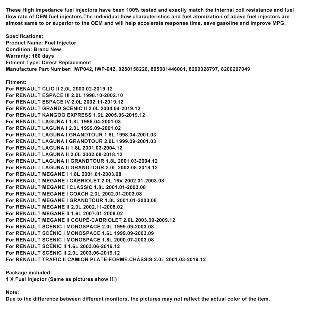 Dessa högimpedansbränsleinsprutare har testats till 100 % och matchar exakt det interna spolmotståndet och bränsleflödet hos originalbränslet. injectors.The De individuella flödesegenskaperna och bränsleförstoftningen för ovanstående bränsleinsprutare är nästan desamma som eller överlägsna de från originaltillverkaren och kommer att bidra till att accelerera svarstiden, spara bensin och förbättra bränsleförbrukningen.