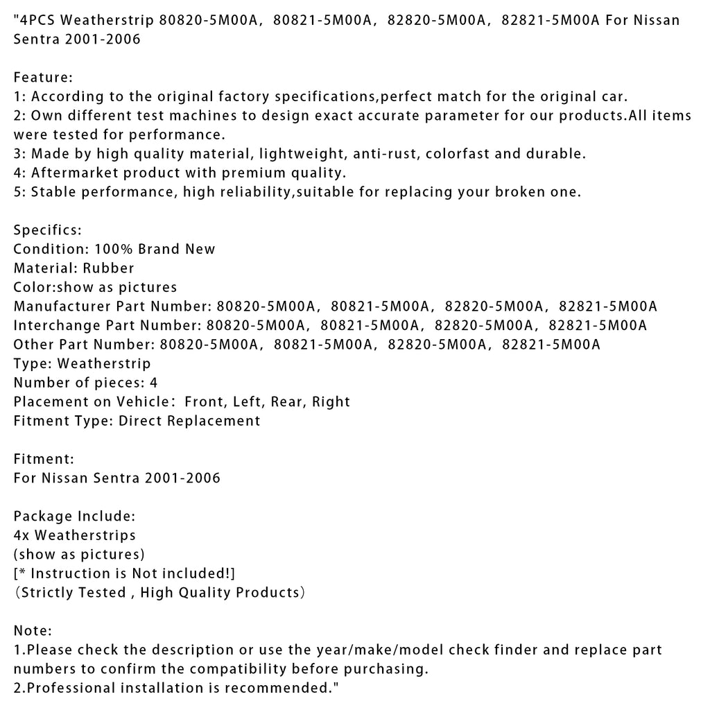 4PCS Weatherstrip 80820-5M00A,80821-5M00A,82820-5M00A,82821-5M00A For Nissan Sentra 2001-2006