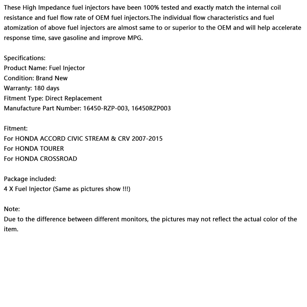 Dessa högimpedansbränsleinsprutare har testats till 100 % och matchar exakt det interna spolmotståndet och bränsleflödet hos originalbränslet. injectors.The De individuella flödesegenskaperna och bränsleförstoftningen för ovanstående bränsleinsprutare är nästan desamma som eller överlägsna de från originaltillverkaren och kommer att bidra till att accelerera svarstiden, spara bensin och förbättra bränsleförbrukningen.