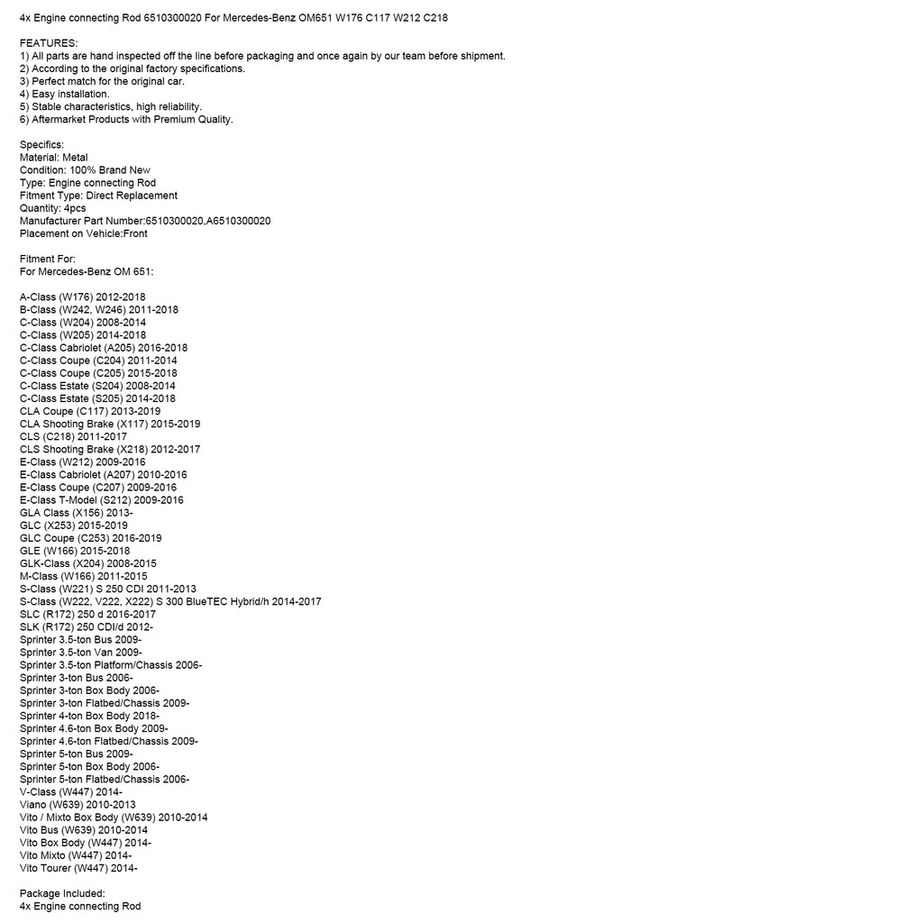 4x Motorvevstång 6510300020 För Mercedes-Benz OM651 W176 C117 W212 C218