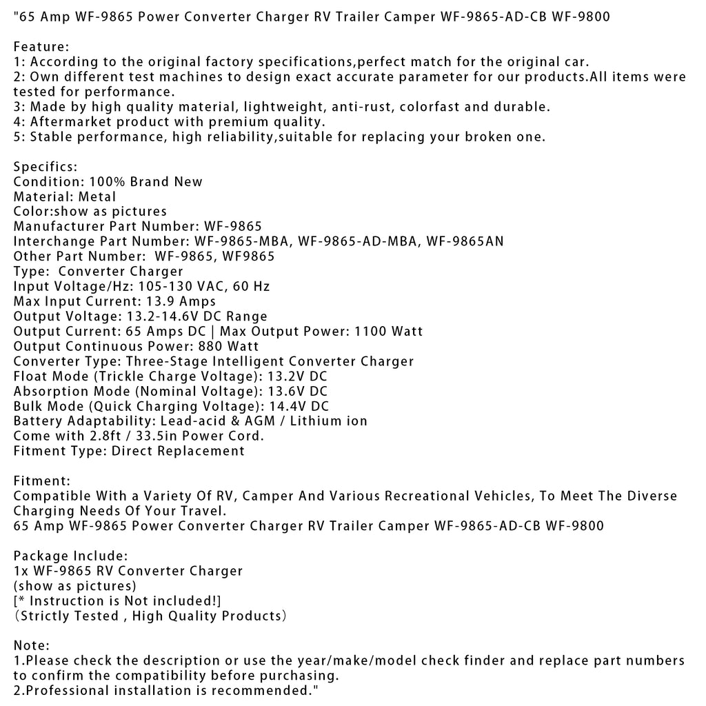 65 Amp WF-9865 Power Converter Charger RV Trailer Camper WF-9865-AD-CB WF-9800