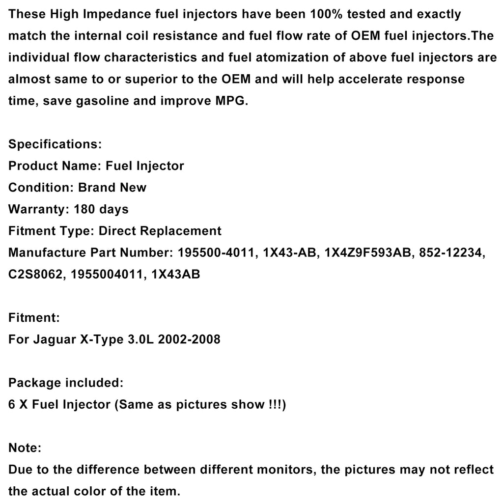 6 st bränsleinsprutare 1X43-AB passar Jaguar X-Type 3.0L 2002-2008 V6 2.5L 1955004011