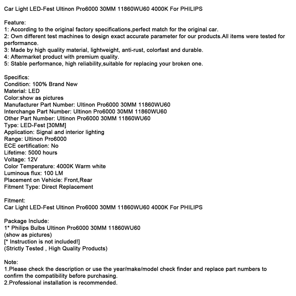Bilbelysning LED-Fest Ultinon Pro6000 30MM 11860WU60 4000K För PHILIPS
