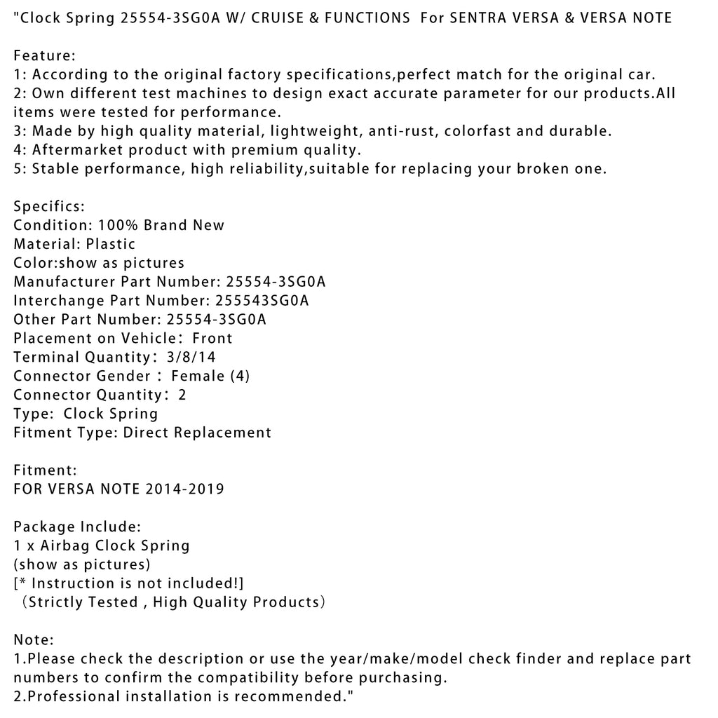 Klockfjäder 25554-3SG0A MED KRYSSNING && FUNKTIONER För SENTRA VERSA &och VERSA NOTE
