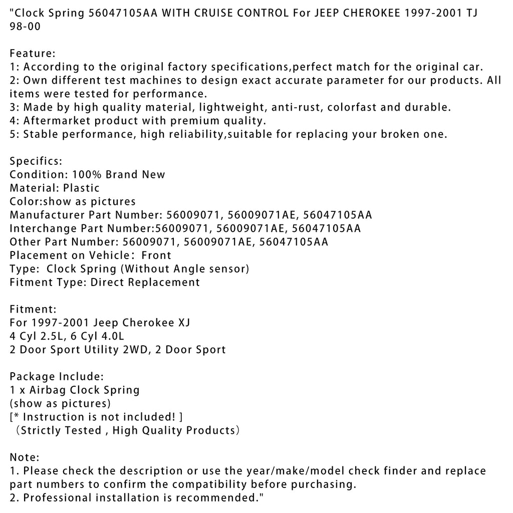Klockfjäder 56047105AA MED FARTHÅLLARE För JEEP CHEROKEE 1997-2001 TJ 98-00