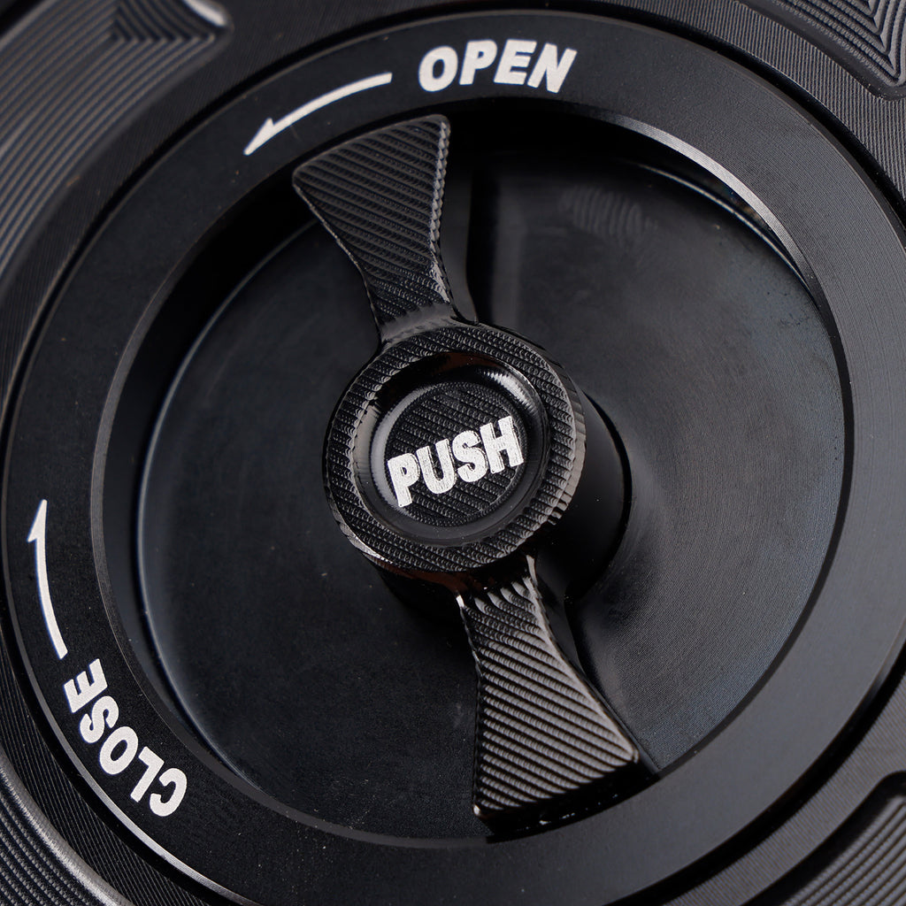 A quick-release fuel cap is perfect for racing, track days, or street riding.