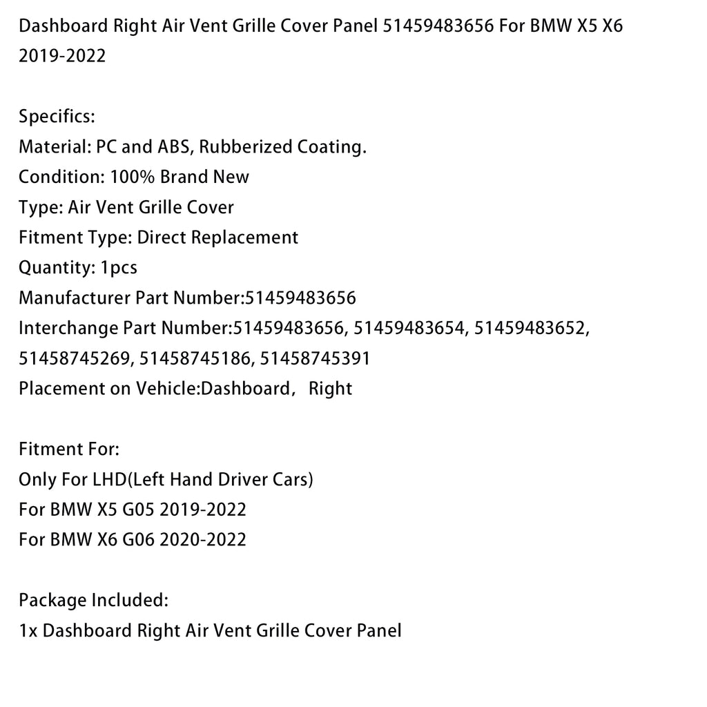 Dashboard Right Air Vent Grille Cover Panel 51459483656 For BMW X5 X6 2019-2022