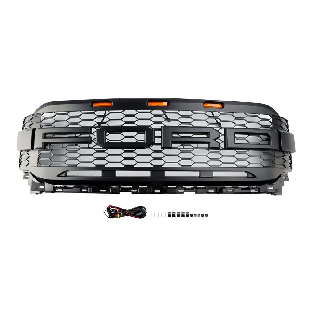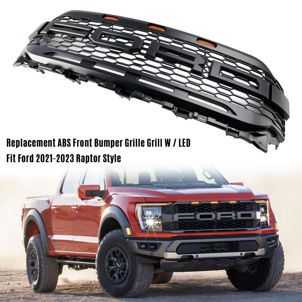 Reservdelsgrill framtill i ABS-kvalitet, passar till Ford F150 Raptor med LED 2021-2023