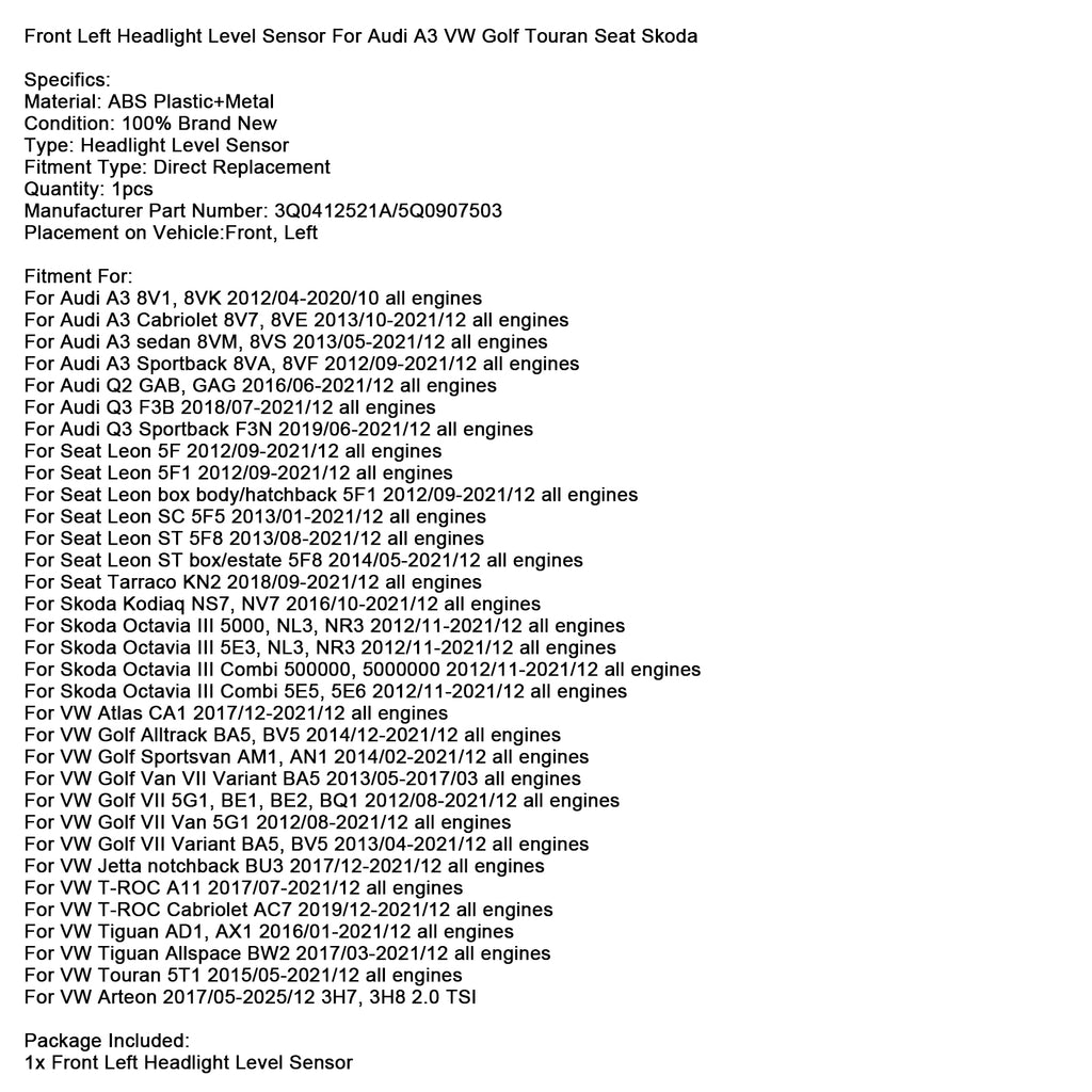 Nivåsensor för strålkastare fram vänster för Audi A3 VW Golf Touran Seat Skoda